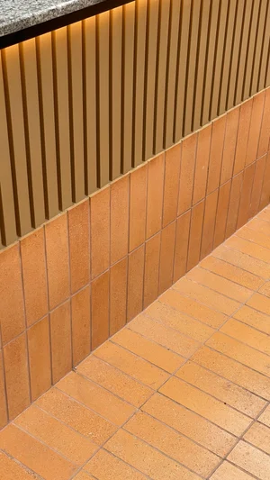 โทนสีหลักของร้านถูกพยุงด้วยพื้นกระเบื้องโทนอุ่น งานไม้ที่ให้ความรู้สึกละมุน และท็อปหินบนเคาน์เตอร์ที่เพิ่มความเนี้ยบแบบพรีเมียม รายละเอียดไฟซ่อนและเส้นตั้งของงานกรุช่วยทำให้พื้นที่ดูมีจังหวะ โดยยังคุมความเรียบอยู่เสมอ