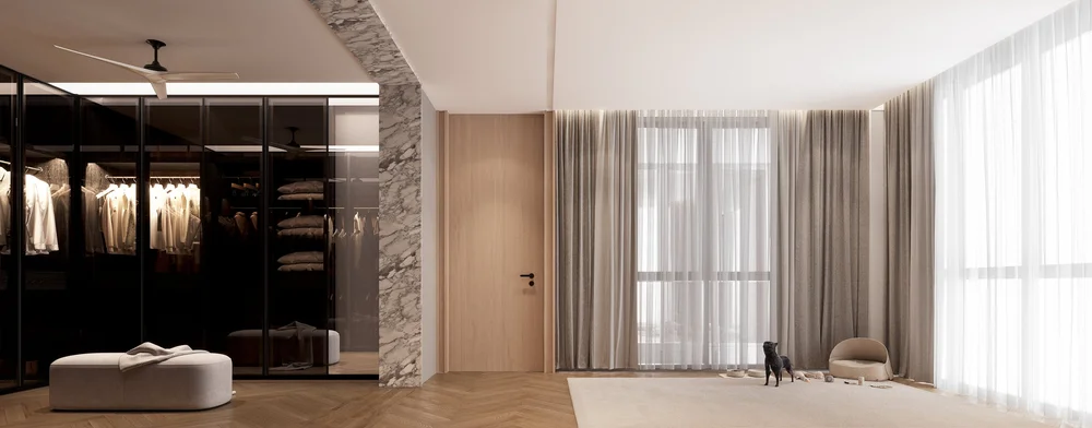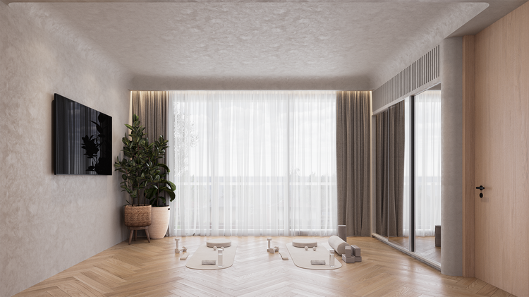 ชั้นบนสุดถูกสงวนไว้ให้เป็นพื้นที่ส่วนตัวที่สุดของบ้าน ประกอบด้วยห้องนอนใหญ่และห้องฟิตเนส เพื่อให้จังหวะการพักผ่อนและดูแลตัวเอง “แยกออกจากงาน” อย่างชัดเจน