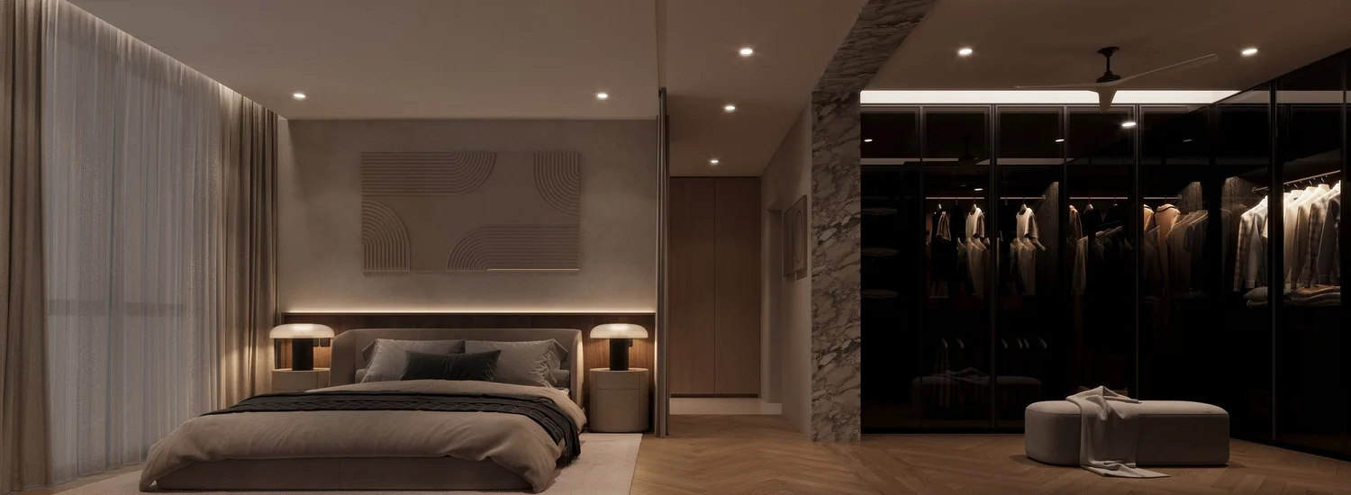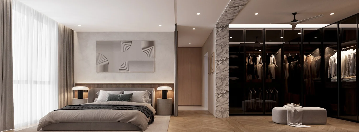 ชั้น 3: พื้นที่ส่วนตัวที่สุด — ห้องนอนใหญ่ + ห้องออกกำลังกาย
