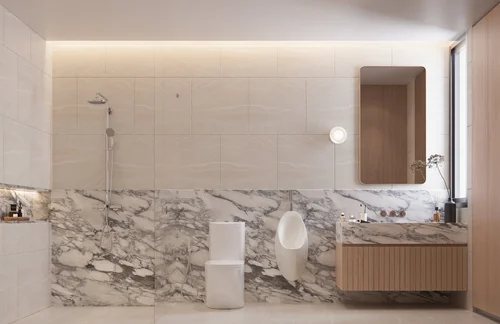 โครงการเลือกสื่อสารผ่าน “ภาษา” ของวัสดุ แทนที่จะใช้สีจัดหรือรูปทรงโดดเด่น โดยจำกัดโทนให้อยู่ในกลุ่มสีใกล้เคียงกัน แล้วใช้ความต่างของ Texture เป็นเครื่องมือสร้างมิติ สุนทรียะจึงไม่ใช่ความหวือหวา แต่เป็นความรู้สึกที่ค่อย ๆ รับรู้ผ่านการใช้งานและการสัมผัสในชีวิตประจำวัน