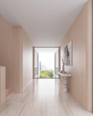 ความท้าทายไม่ได้หยุดแค่การแบ่งพื้นที่ แต่คือการออกแบบท่ามกลางเงื่อนไขของเมือง ในย่านสาธุประดิษฐ์ที่ดินมีมูลค่าสูงและขนาดจำกัด ทุกตารางเมตรจึงต้องมีเหตุผลในการดำรงอยู่ โครงการจึงถูกวางลำดับพื้นที่แบบแนวดิ่ง ให้แต่ละชั้นเชื่อมต่อกันทั้งเชิงกายภาพและเชิงกิจกรรม พร้อมหาสมดุลระหว่างพื้นที่รับรอง (กึ่งสาธารณะ) และพื้นที่พักผ่อน (ส่วนตัว)