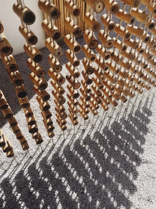 จากภาพจะเห็นการออกแบบทางเดินที่ค่อย ๆ บีบมุมมองด้วยกำแพงสูงสองฝั่ง ก่อนเปิดให้เห็นช่องวงกลมและช่องโค้งเป็นระยะ ๆ เทคนิคนี้ช่วย “รีเซ็ตความรู้สึก” ให้คนที่เข้ามาอยู่ในโหมดผ่อนคลายมากขึ้น